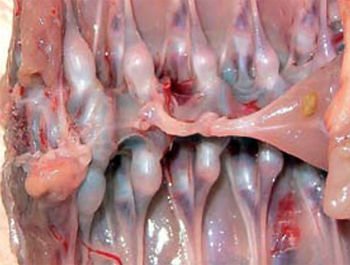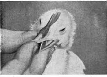 ✔Otros signos incluyen picos de goma, acortamiento de la parte inferior del pico, aves sentados en corvejones y plumas rizadas.