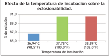 El efecto de la temperatura de incubación sobre la eclosionabilidad y calidad de los pollitos se puede observar en los siguientes gráficos.
