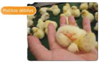 Los estándares tradicionales de calificación de pollitos (derecha) se aplican visualmente y los daños causados a los pollitos por sobrecalentamiento no son obvios como para retirarlos en los operativos de calificación. Investigaciones realizadas por Wineland y Hulet indican que los pollitos sobrecalentados pueden presentar los siguientes síntomas: