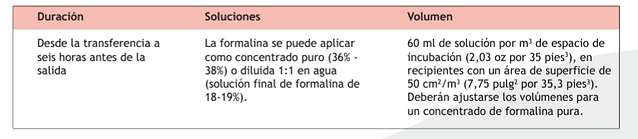 La higiene del agua también es potencialmente importante y es una buena opción el uso de cloro a razón de 3 ppm (dependiendo del ph del agua (ph<7)). La fumigación de las plantas de incubación con formalina ha logrado buenos resultados en la reducción de la carga bacteriana.