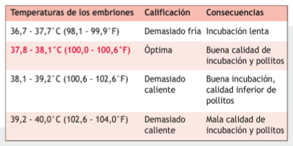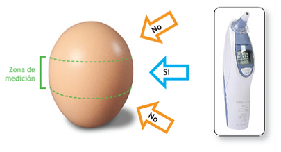 Las temperaturas de los embriones- se pueden medir con precisión tomando las temperaturas de las cáscaras en huevos fértiles en el ecuador del huevo con un termómetro thermoscan entre los 16 y 18 días de incubación.