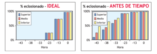 Los objetivos son que los pollitos eclosionen: Máx. 25%, 24 horas antes de la extracción Máx. 75%, 12 horas antes de la extracción.