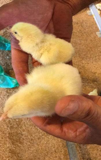 Foto 1: Diferencia en desarrollo a los 2 días de edad simplemente por falta de encontrar el niple de agua después el alojamiento.