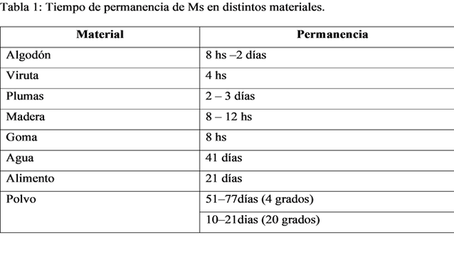 Debido a su pequeño tamaño se transporta por el aire y polvo hasta por 8 kilómetros, también sobrevive más tiempo en agua, tierra y en restos de huevo. (Tabla 1).