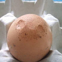 En los lotes infectados con ciertas cepas de MS se observa un incremento de huevos rotos y rajados, así como también un defecto en la cascara de los mismos en el extremo apical (extremo puntiagudo), presenta una forma áspera en la superficie con un adelgazamiento y translucidez que se los conoce como huevos de vidrio (El-Gazzar, 2020).